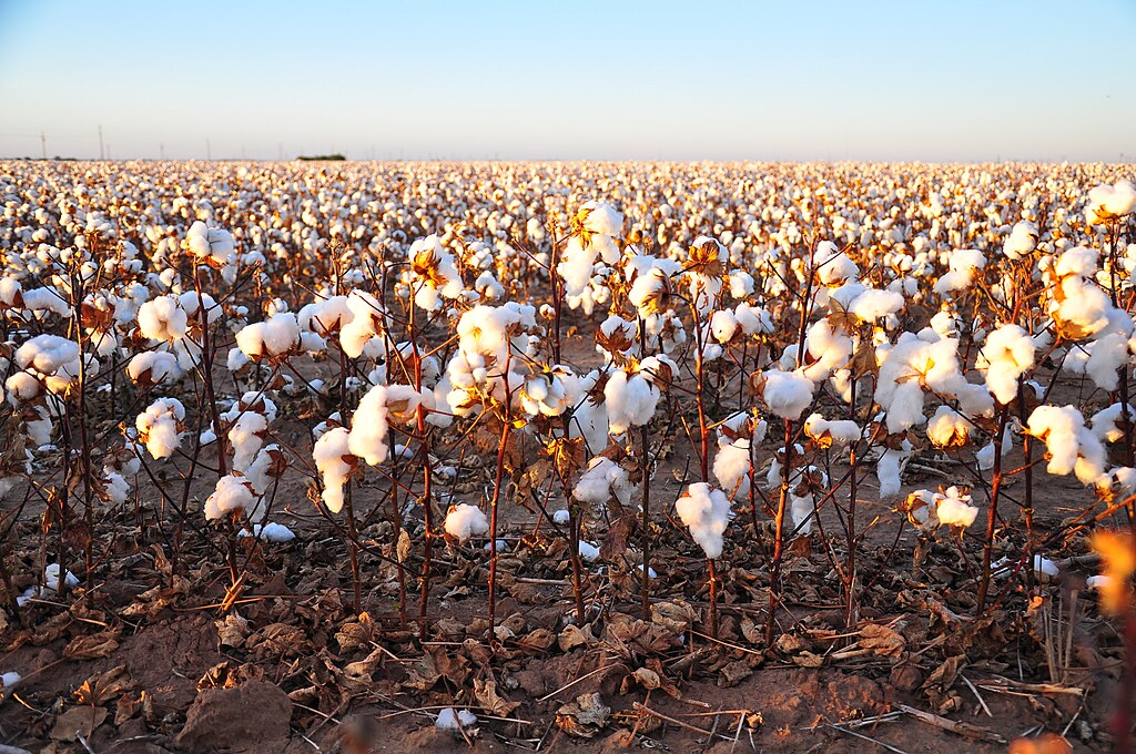 Na fotografii vidíme bavlníkové pole. Bavlna je druhým nejčastěji používaným materiálem v oděvním průmyslu, hned po polyesteru. Největšími producenty bavlny jsou Indie a Čína, kde se bavlna často pěstuje v suchých oblastech, v nichž je nedostatek vody, ale pro pěstování i zpracování textilu je jí zapotřebí velké množství. To vede k vyčerpání místních vodních zdrojů, vysychání studní a mizení celých řek a jezer.